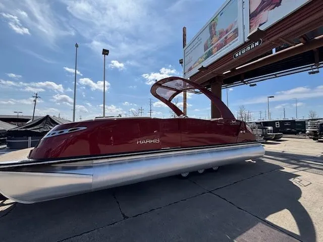2018 Harris 250 SL Crowne with 400R Mercury Verado with 474hrs Power Sport Arch Tandem Axle Bunk Trailer Tri Log Fusion RedFrench Gray Interior Gray Woven Teak Flooring Lighting PackageSimrad Go5 Chartplotter Ski Tow PylonJL Platinum Sound System with 6 Speakers, Amp & Sub
