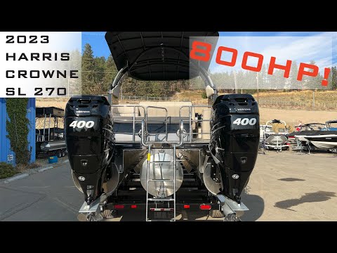 Turn heads on the water with this stunning 2021 Harris Crowne SL 270 Twin Engine - the pinnacle of luxury pontoon performance. Powered by twin engines, this boat delivers thrilling acceleration, smooth cruising, and effortless handling.