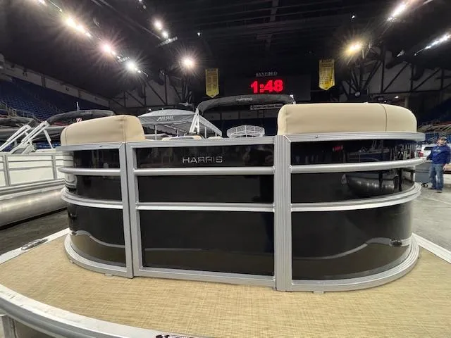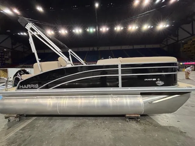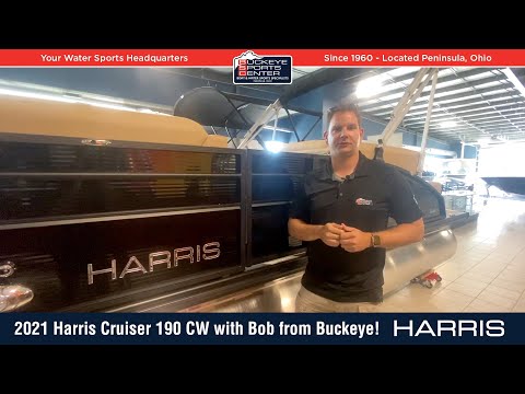 This 2025 Harris Cruiser 190 with the CW Floorplan powered by a 60 hp Mercury 4 Stroke, is Ebony Metallic is optioned with: the 225 Chassis 2-25" Diameter Pontoons with Strakes and 10' Black Bimini Top, 4 Step Ladder, Desert Beige Seagrass Flooring, Clarion Stereo with 4 Clarion Speakers, Docking Lights, Cover and a Table.