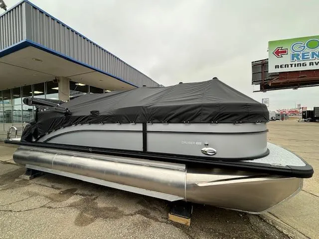 This 2024 Cruiser 210 is Matte Silver Gray with the White Diamond Accent, and comes equipped with: 200hp Mercury 4 stroke, CWDH Floorplan, Tri Log (325 Chassis- 3 tubes 25:"out - 27" Center tube) 10' Bimini top, 4 step ladder, Stainless Steel Ski Tow Bar, Highback Seat, Seagrass Flooring(full pontoon), Nsx7 Simrad Chartplotter, JL Stereo with 6 Clarion Speakers, Interior Lighting Package, Table, and Cover.