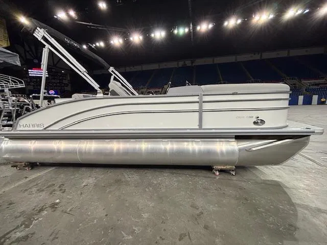 This 2025 Harris Cruiser 210 with the SL Floorplan powered by a 90 hp Mercury 4 Stroke, is Ceramic White and is optioned with: the 225 Chassis 2-25" Diameter Pontoons with Strakes and Keel, Xtreme Steering, 10' Black Bimini Top, Tech 1 Package, Convenience Package, Lillipad Easy Step Ladder, Ski Tow Bar, Stone Gray Woven Full Flooring, Depth Gauge , Clarion Stereo 4 Clarion Speakers, Docking Lights, Rail Safety Sanctions, Cover and a Table.