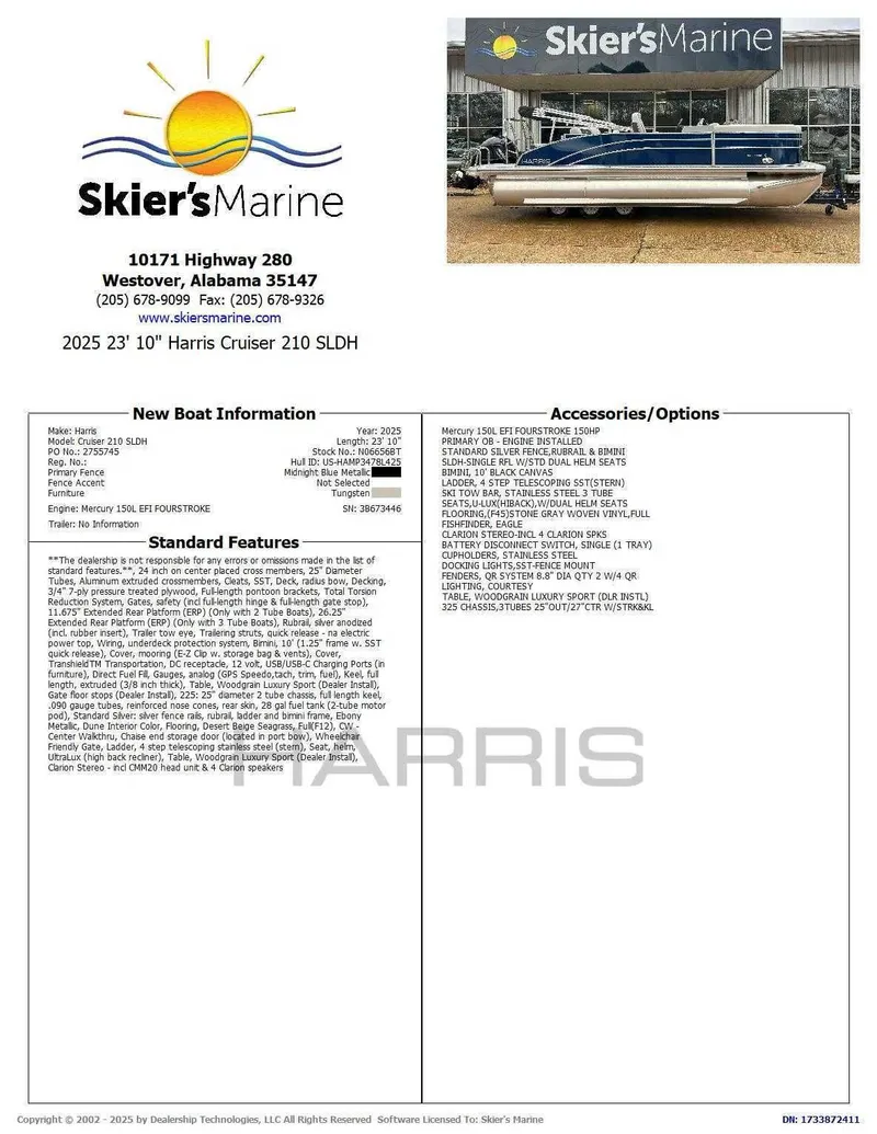 2025 Harris Cruiser 210 SLDH