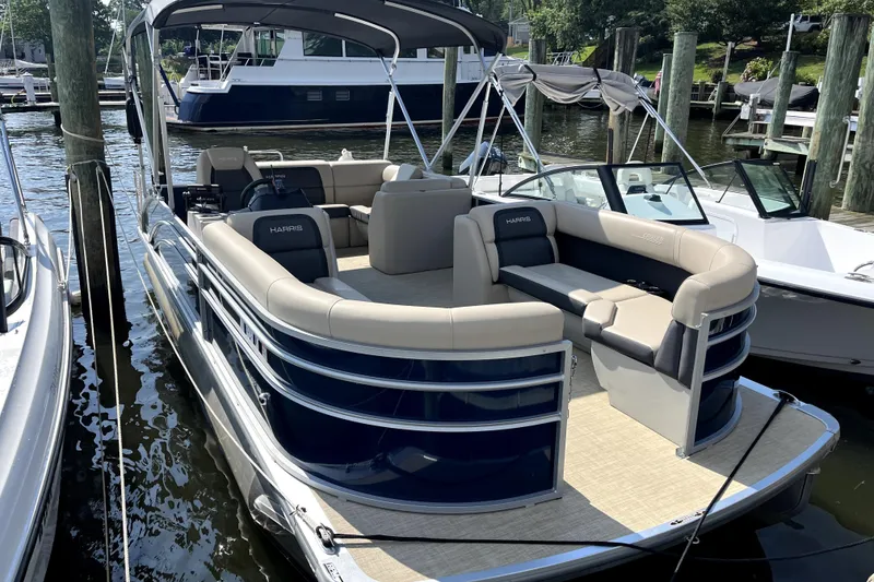 The Harris HCX23 offers premium pontoon craftsmanship with a spacious, family-friendly layout. Designed for comfort and versatility, this 23-foot pontoon features plush seating, a modern helm, and durable aluminum construction. Powered by a Mercury FourStroke outboard, it delivers smooth cruising and dependable performance.