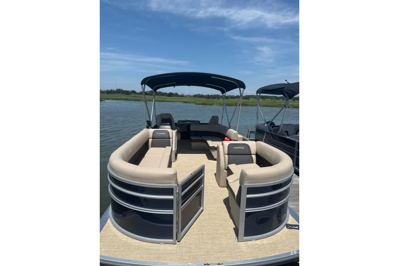 The Harris HCX23 offers premium pontoon craftsmanship with a spacious, family-friendly layout. Designed for comfort and versatility, this 23-foot pontoon features plush seating, a modern helm, and durable aluminum construction. Powered by a Mercury FourStroke outboard, it delivers smooth cruising and dependable performance.