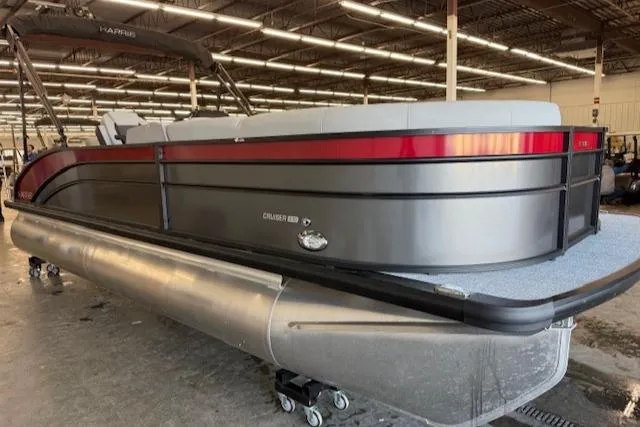 This 2025 Harris Cruiser 230 with the CWDH 2 Piece Floorplan powered by a 115hp Mercury 4 Stroke, is Matte Black with the Blush Red Accent and is optioned with: the 225 Chassis 2-25" Diameter Pontoons with Strakes and Keel, 10' Black Bimini Top, Convenience Package, Lillipad Easy Step Ladder, Skit Tow Bar, Stone Gray Woven Vinyl Flooring, Depth Gauge, Clarion Stereo with 4 Clarion Speakers, Cover and a Table. JB