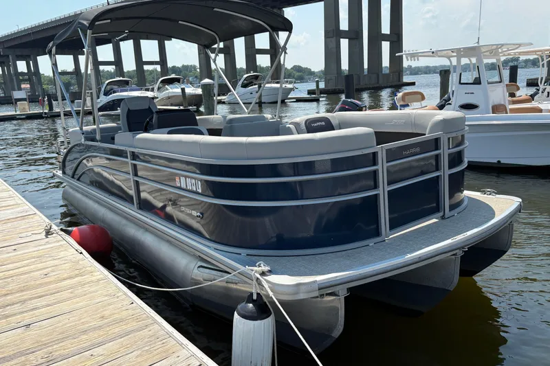 The Harris HCX23 offers premium pontoon craftsmanship with a spacious, family-friendly layout. Designed for comfort and versatility, this 23-foot pontoon features plush seating, a modern helm, and durable aluminum construction. Powered by a Mercury FourStroke outboard, it delivers smooth cruising and dependable performance.