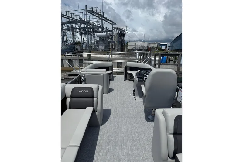 The Harris HCX23 offers premium pontoon craftsmanship with a spacious, family-friendly layout. Designed for comfort and versatility, this 23-foot pontoon features plush seating, a modern helm, and durable aluminum construction. Powered by a Mercury FourStroke outboard, it delivers smooth cruising and dependable performance.