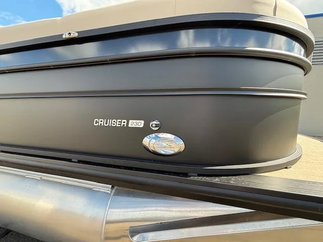 2025 Harris Cruiser 230 with the SLDH Floorplan powered by a 150hp Mercury 4 Stroke, is Matte Black with the Black Sapphire Accent is optioned with: Hydraulic Steering the 25" Diameter Pontoons with Strakes and Keel, Tech 1 Package, Convenience Package, Interior Lighting Package, Lillipad Easy Step Ladder, Ski Tow Bar, Desert Beige Seagrass Flooring, Wireless Mobile Phone Charger/Holder, NSX7 Simrad, Stereo with 4 Speakers, Docking Lights, Cover and a Table.JZ