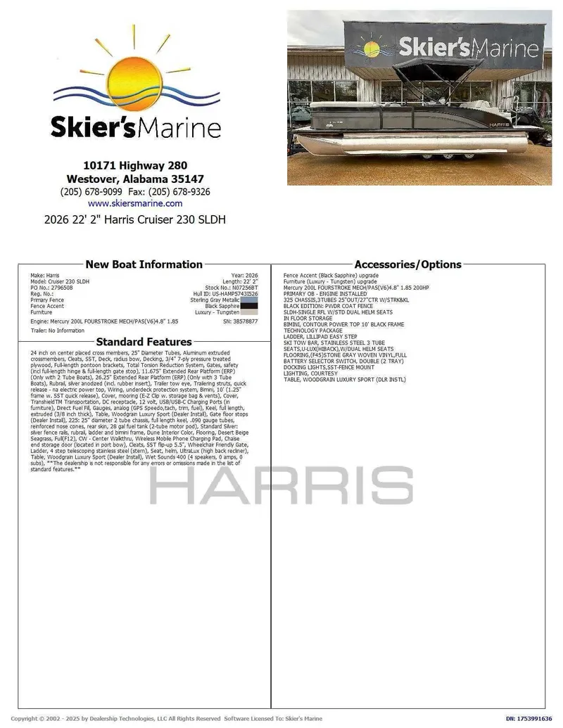 2026 Harris Cruiser 230 SLDH, The 2026 Harris Cruiser pontoon is ideal for families and adventurers seeking a blend of performance, comfort, and durability. Key features include the signature RPM Technology chassis for a smooth, stable ride and better fuel efficiency, plush soft-touch seating, and versatile layouts like the single rear-facing lounger (SL) or dual helm (DH). Amenities such as a power Bimini top, integrated swim ladder, and available entertainment upgrades (Wetsounds audio, RGB lighting) elevate the experience. With rob