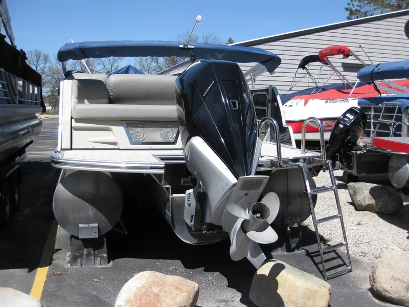 This 25' tri-toon, powered by 300 horsepower Mercury Verado Outboard motor, is currently on site and ready for the lake! Boat has a power bimini top, upgraded steering wheel, privacy enclosure, rope courtesy lights, two tables, ski pylon, dual batteries, stainless steel rub-rail, and more! $79,000 plus tax, title and registration.