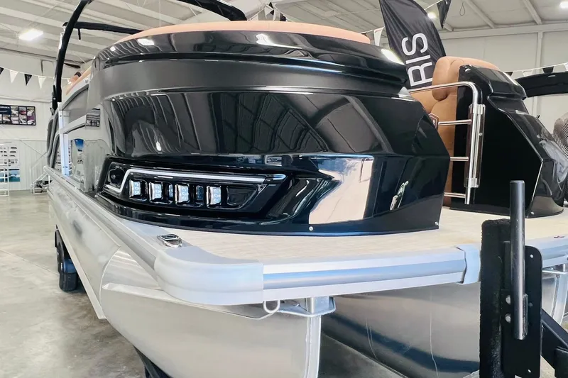 Black Sapphire , Matte black Accent with Cool Touch Chestnut Brown Interior, ION Tower / Remote Key Fob and Powered by a Mercury Verado 300Hp PAS(power assisted steering), DTS-Digital Throttle & Shift, with Auto Trim, S/S Prop. 325 Performance 25'' / 27'' Pontoons. Silver Powder Coat Fence Rails, Colored Touch Screen Simrad 9" Screen with Merc. SmartCraft Vessel View, Chart-plotter, GPS, Depth Finder.
