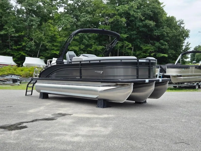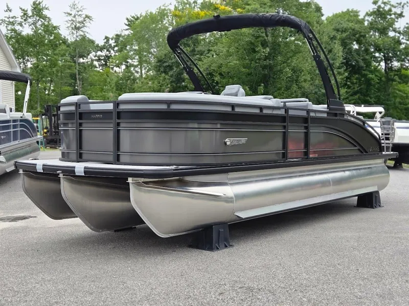 2025 Harris Solstice 230 with a Mercury 250HP. Sterling Gray metallic, black matte accent, black edition, SL floorplan, luxury shade gray furniture, salt water anodes, interior light package, lillipad ladder, ski tow bar, raised helm, stone gray woven vinyl flooring and much more!