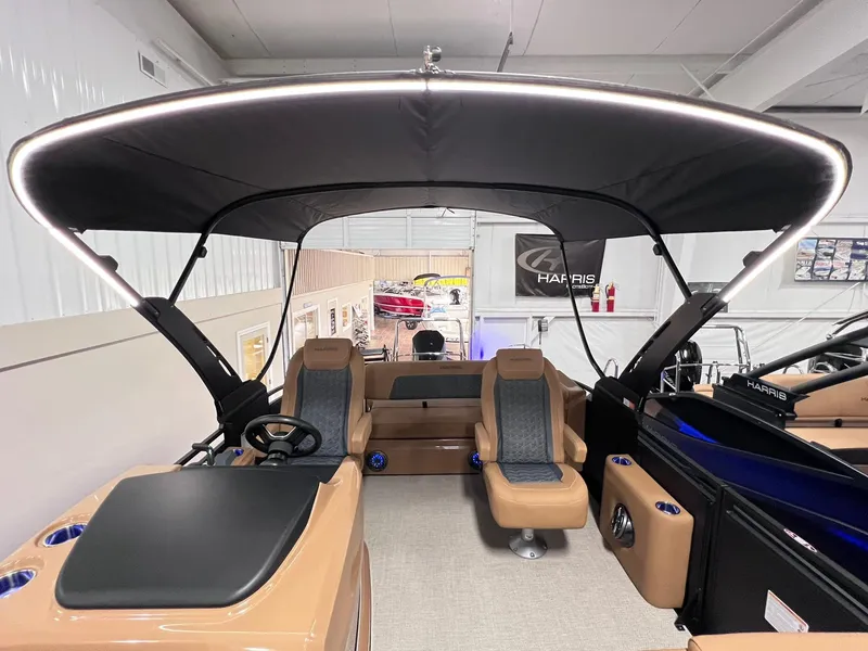 Matte Black Exterior, Black Out Rail Kit, Luxury Chestnut Brown Interior with Onyx Accent and Sandy Shoreline Flooring. All New Halo 10ft. Power Bimini Top with Halo LED Lighting.