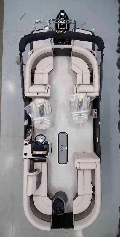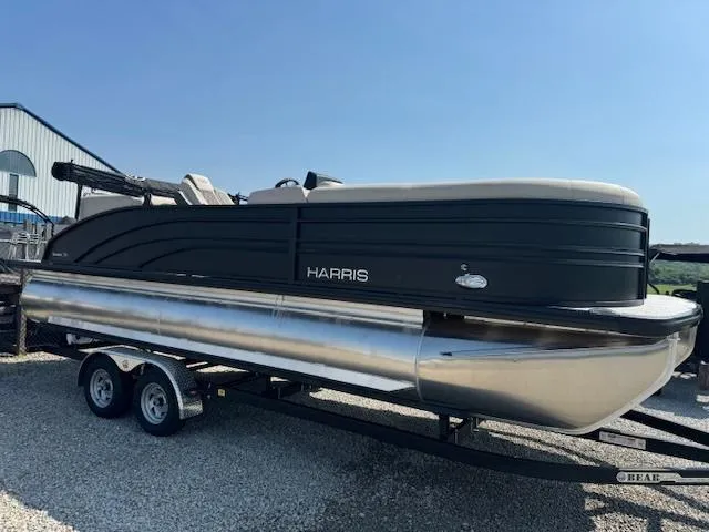 New 2024 Harris Sunliner 230 CWDH powered by Mercury 200L DTS. Includes Triple Tube, 10' bimini top, in floor storage, Tech Package 1, Interior Lighting Package, telescoping ladder, stainless ski tow bar, dual hiback seats, Captain seat with adjustable height, Beachwalk Seagrass flooring, wireless phone charger, removeable windscreen, battery switch, woodgrain luxury sport table, Bear trailer and more.