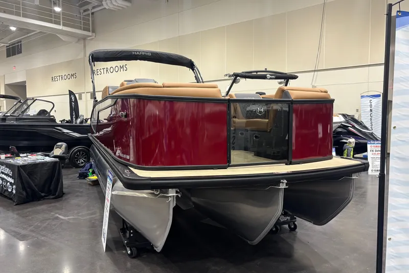 TOTALLY REDESIGNED FOR 2026! Be the first to take home Harris' newly redesigned Sunliner series! We loaded this tritoon with tons of options to celebrate the remodel. This boat has a 150hp Mercury outboard with hydraulic steering, power bimini, raised helm, Wetsounds 600 audio system, cooler storage chaise end, SL entertainer floorplan with table, chestnut furniture, and black edition powder coated fence. The boat also has two NEW colors for 2026. The rear sun lounger now features a FULL width back rest. Comes with full mooring cover. Call today for more details on the new Sunliner or to make this boat yours for this coming season!