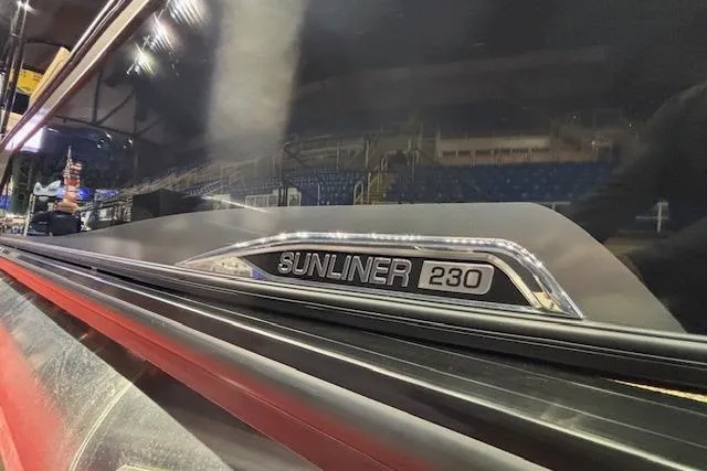 Check Out the ALL NEW 2026 Sunliner 230. This is Black Sapphire with Desert Metallic Accent and comes equipped with: 200hp Mercury 4 stroke, CWDH Floorplan, Luxury Chestnut Brown Interior, 227 Chassis, 2-27" Diameter Pontoon Logs, 10' Contour Power Bimini Top, Chrome Accent Trim Package, Black Edition Package, Total Lighting Package, NSX9 Simrad, Lillipad Easy Step Ladder, Stainless Steel Ski Tow Bar, Chestnut Teak Flooring(full pontoon), Table, and Cover. ( Factory Photo Showing Tri-Log, This Pontoon is not a Tri-Log)