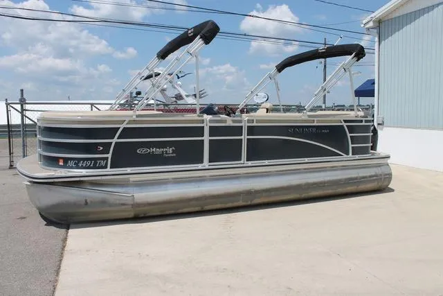 Harris Sunliner LS 220 powered by a Mercury 4 stroke engine and loaded with features like: Rear boarding ladder, 60hp 4stroke engine, ski tow bar, mooring cover, grill, 13 person capacity, sony am/fm stereo, depth sounder, full capmer enclosure, table. This has gone through our service department and everything checks out.