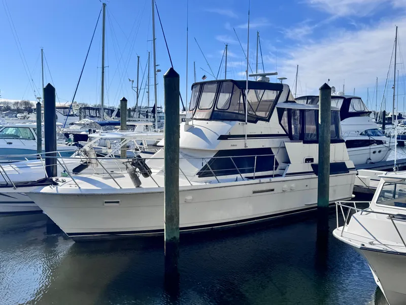 1991 Hatteras 40 Aft Cabin Motor Yacht. Very nice low hour, well maintained Caterpillar 3208 Diesels (1750 Hrs). She Runs Great and smells great. Boat has many upgrades including Bow thruster, Electronics, Helm professional rewire. Onan 8KW generator with sound shield.