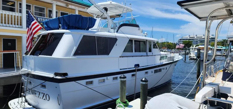 Step aboard a true piece of American yachting history with this 1972 Hatteras 53 Extended Deckhouse Motor Yacht, Intermezzo. Built during the golden era of Hatteras Yachts craftsmanship, this vessel stands apart not only for her solid construction and timeless design, but for her remarkable provenance - having once been owned by the Eisenhower family. With her classic lines, spacious three-stateroom layout, and dependable twin Detroit Diesel power, Intermezzo offers a rare opportunity to own a yacht that blends enduring build quality with a compelling story that few vessels can match.