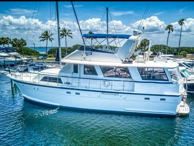 If you are looking for a large beamy boat with a nice enclosed aft deck that is extremely economical with fuel consumption, look no further. This is it. Yacht runs like a newer yacht since the engines were majored a few years ago.