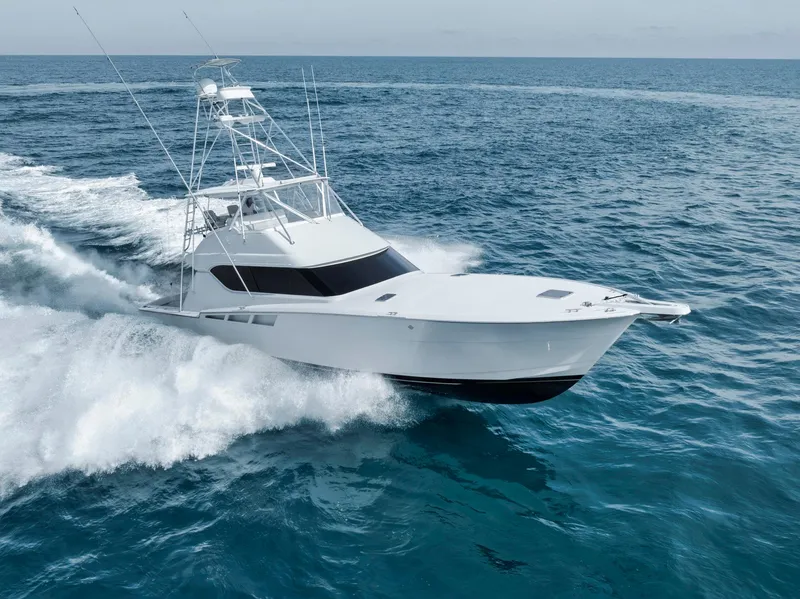 The Hatteras 60 Convertible is one of the most well-proportioned boats in her class. From the enormous cockpit to the spacious salon and it only gets better from there. The 60 Convertible features a generous three stateroom, three head layout and a full galley perfect for all your entertaining needs. The flybridge features a large helm console, ample seating and storage. The engine room is spacious, easily navigable around the outboard sides of the motors, it’s so comfortable your mechanic will really appreciate it.