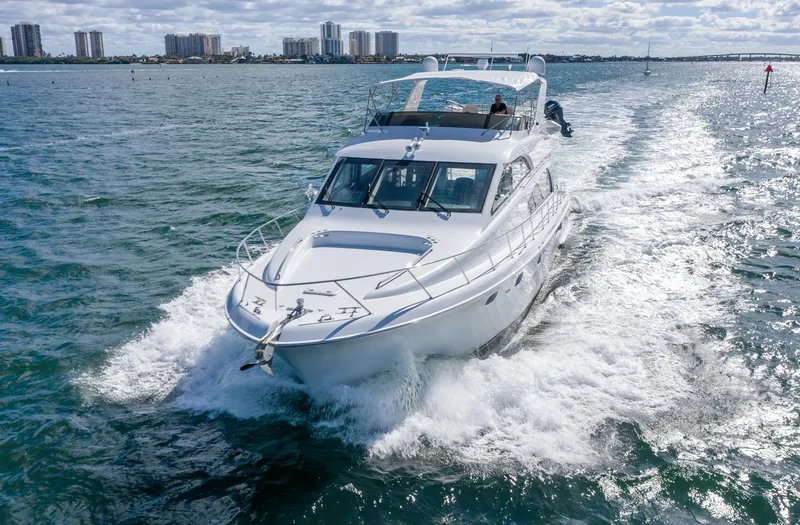 Sturdy Construction: Built with a robust fiberglass hull, the Hatteras 63 provides excellent durability and seaworthiness, suitable for extended cruising.