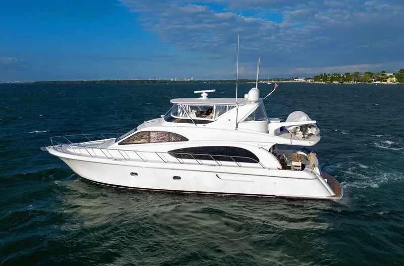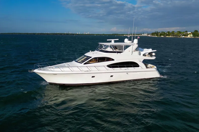 Throughout the boat, air conditioning spills over the soffits running down the hull sides of each area, allowing the flow of air to spread over the entire length of the room. Air returns are routed through the cabinetry where possible to keep the headliner clean. All heads are equipped with an air conditioning vent, full Plexiglass mirrors, bowed wood cabinets, solid surface countertops and backsplashes, Amtico vinyl-strip flooring, wood baseboards and high-quality fixtures as standard equipment.