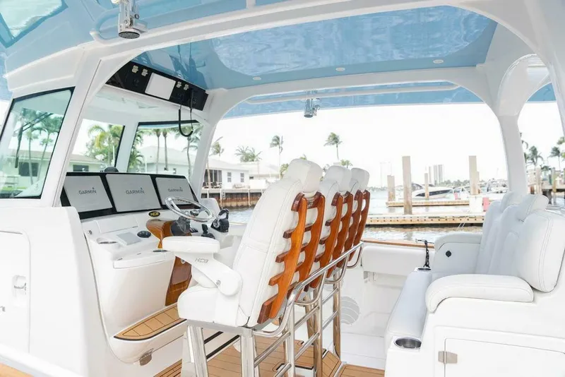 This 2020 42 HCB yacht is fully loaded with custom options and countless recent upgrades. The vessel has a factory installed Seakeeper 3 and teak covering boards/accents/countertops giving this aggressive offshore machine the perfect look as a luxury tender as well. The boat is set up for the serious fisherman and fully appointed for cruising with plenty of seating, cabin AC and electric bow table. The boat has been rack stored indoors and recently had a fresh coat of bottom paint applied along with a full detail. This 42 is turn key and ready to show in North Palm Beach, FL.