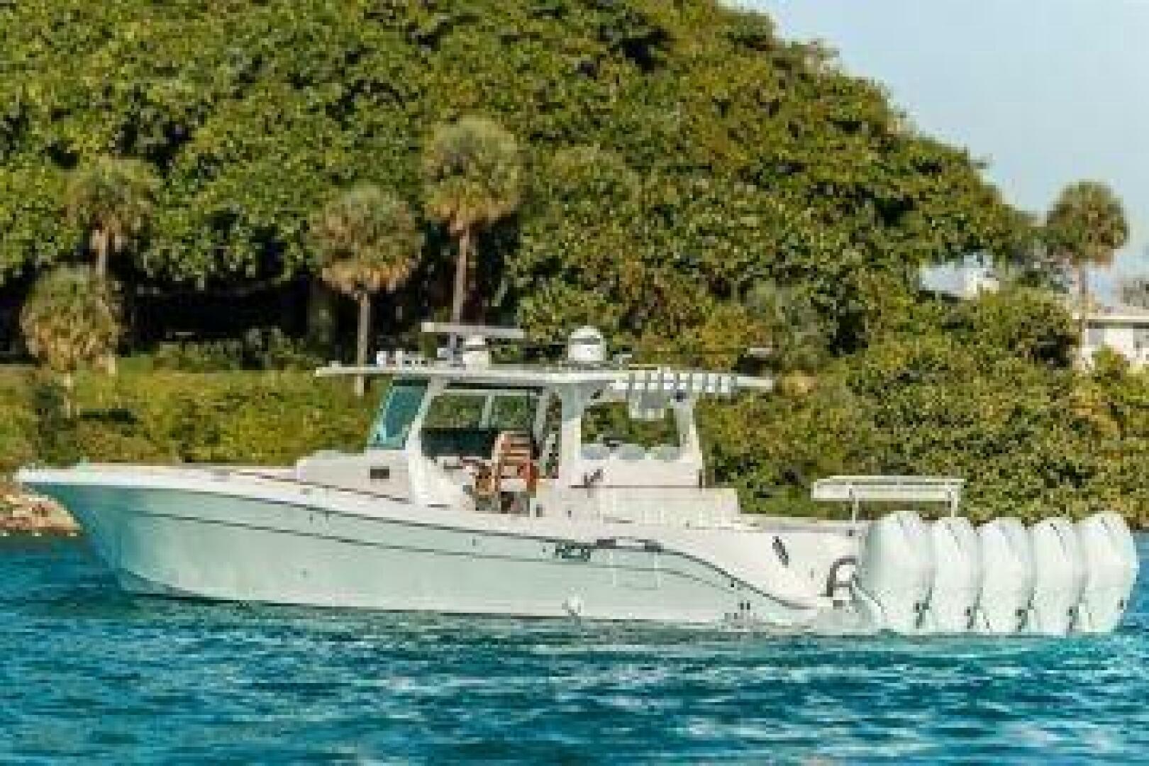 Air Conditioning -110 Volt Cool and Heat Anti-Fatigue Flooring (Helm and Second Row Seating) Baitwell-Dual Frigid Rigid, 60 Gallons Each Bow Rails-Faired Welds, Custom Painted Bow Table -Fiberglass with Power Lift and Filler Cushion Bow Thruster Cabin Floor -Real Teak with White or Black Accent Lines Cabin with Galley Sink, Refrigerator, Microwave, Berth, TV, Enclosed Head and Luxurious Stall Shower Cabinetry-Solid Hardwood Cockpit Shower/Freshwater, Integrated Hardtop Frame Engines - Custom Painted Dive Doors - Port and Starboard, Open Inward for Use While Docked Fish Boxes (Port/Starboard Aft Cockpit, 150 Gal Each Forward Console Cooler- Frigid Rigid, 54 Gallon Forward Gunwale Mounted Coolers-Frigid Rigid, 2 Port, 2 Starboard Generator-7.6 KW Westerbeke, Diesel, 26 Gal Fuel Tank Hard Top -Custom Painted Frame with Faired Welds Integrated Windshield, D-Tubing, Rod Holders Spreader Lights, Molded Rain Gutters & Handrails HelmMaster Steering with Joystick Helm Seats – Triple Captain’s Chairs with Swivel Pedestals Insulated Deck Lids – Rubber Gaskets, Drainage Channels Integrated Dry Bilge System Seating – Second Row Sleigh Seat Seating – Bow Loungers, Port/Stbd with Molded Seat Backs Spotlight -ACR with Dash Mounted Control and Wireless Remote Stereo System -JL Audio -Two 6.5″ Speakers, Two 7.7″ Speakers, Four 8.8″ Speakers, Four 10″ Subwoofers Summer Kitchen -Two Sinks, S/S Grill, S/S Refrigerator and Storage Transom Seat Coolers -(2) Frigid Rigid Trim Tabs -Polished Stainless Steel with Dual Hydraulic Rams USB Ports -Integrated In 2nd Row Sleigh Seat, (2) Port, (2) Starboard Wash Down -Fresh Water, 20’ Retractable Hose Reel, Port, Mid Ship Wash Down -Raw Water, 20’ Retractable Hose Reel, Starboard, Mid Ship Wash Down -Raw Water, (2) Quick Connect Hose Connections, Bow / Stern Windlass – S/S Anchor, 375′ Rope/Chain Combo • Yamaha Set Point (Quad Yamaha