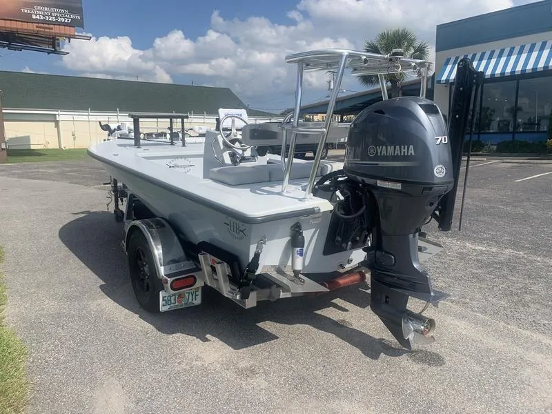 The 2018 Hells Bay Biscayne let's you cross treacherous waters and pole shallow flats! This boat is powered by the Reliable Yamaha 70 hp with 395 hours. It also comes with an Aluminum Ram-Lin Trailer.