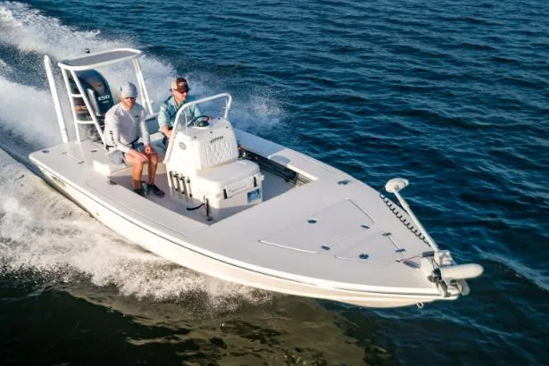 One of the most popular flat boats on the market! This brand-new Hewes Redfisher 18 was built using vacuum infusion to make for a fast and smooth cruise over the water and is powered by a Yamaha VF150LA engine. You will have a blast out fishing on this vehicle. It comes with a center livewell, compass, and your choice of the Garmin Deluxe Electronics Package. In addition, a new backrest/step is integrated into the poling tower to make every trip into the backcountry a safe and comfortable experience. Call now to get more information on this new boat!