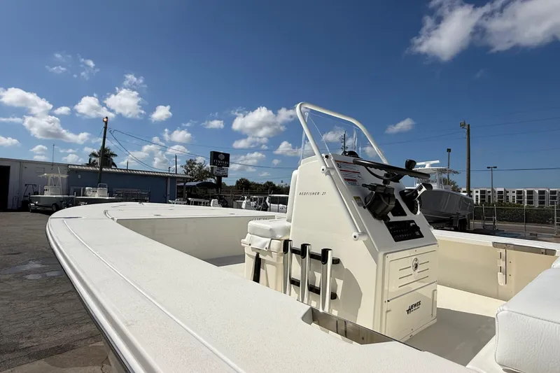 The Redfisher 21 takes hardcore, nearshore and backcountry fishing to a whole other level. Built using VARIS (Vacuum Assisted Resin Infusion System) and designed for a maximum horsepower rating of 350 with a jackplate standard, this boat specializes in catching bait in one zip code, fishing in another, and then getting back to the dock in time for a tournament weigh-in... even in the toughest conditions. Huge casting decks and walkaround gunwales make for a stable, uncluttered platform that allows multiple anglers to fish and quickly move around when the action gets hot and still stay out of each other's way. Plus, there's tons of lockable, dry storage for everything from cast nets to gear bags and the new console has enough dash space to flush mount a 12" unit with room to spare. If you've been looking for a fast, bait-carrying machine that puts a premium on running performance and comfort and is equally at home along a mangrove shoreline, in an inlet, or off the beach, your search has ended.