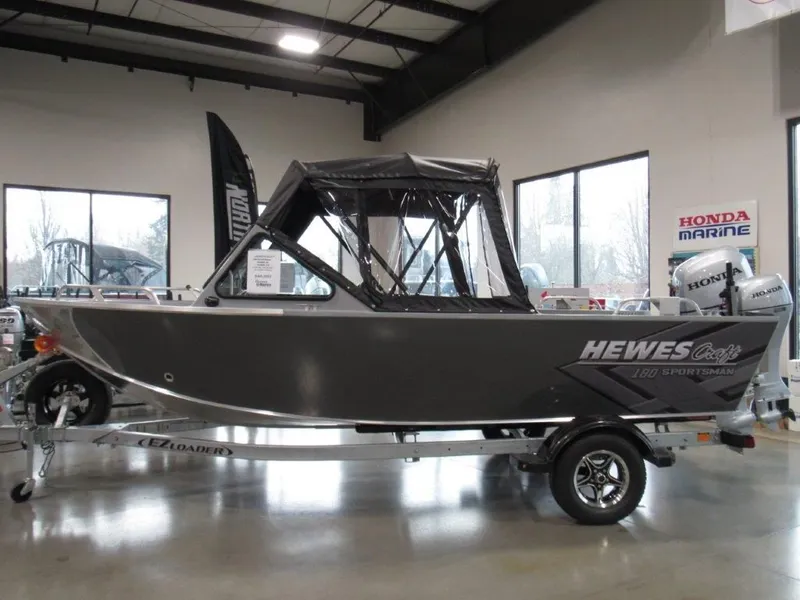 IN STOCK 20256HEWESCRAFT 180 SPORTSMAN, STOCK # HEW17931K526, POWERED BY A HONDA 90 AND 9.9, FEATURES A FULL FISHERMANS TOP, DIAMOND PLATE BOW GAURD, FULL SIDE VINYL. BOW RAILS, BOW FISH BOX WITH LIVEWELL, STERN RAILS WITH DOWN RIGGER MOUNTS, BATTERY WITH SWITCH, WASH DOWN PUMP, NAV LIGHTS, DRIVER SIDE WIPER, BILGE PUMP, 2 SEATS ON STORAGE BOXES, 2 BENCH SEAT ON BOXES, SINGLE AXLE EZ LOADER TRAILER WITH SWING TONGUE, SPARE TIRE AND CARRIER