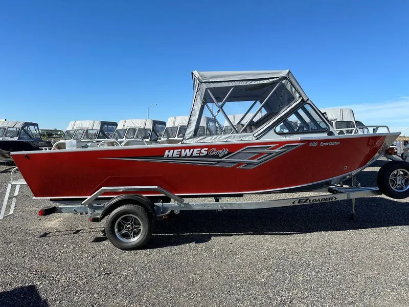 This 2025 Hewescraft 200 Sportsman is paired with a 2025 Yamaha 115hp outboard and sits on a 2025 EZ Loader Trailer.