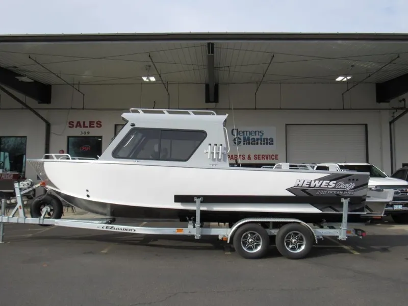 IN STOCK 2026 HEWESCRAFT 240 OCEAN PRO ET HT, STOCK# HEW18432K526, READY FOR YOUR CHOICE OF HONDA OR YAMAHA OUTBOARD. FEATURES A FULL HARD TOP WITH ALASKAN BULKHEAD AND SECOND STEERING STATION, BOW RAILS, DIAMOND PLATE BOW GUARD, BOW FISH BOX/ ANCHOR COMPARTMENT, FULL ET BRACKET WITH SWIM STEP AND KICKER MOUNT, TRIM TABS, WALK THRU TRANSOM DOOR, TRANSOM FISH BOX WITH LIVEWELL, IN FLOOR FISH BOX WITH PUMP OUT, ALUMINUM REAR DECK WITH SAFETY GRIP, WASH DOWN PUMP, HYDRAULIC STEERING, SIDE MOUNT AND ROOF MOUNT ROCKER LAUNCHERS, DUAL BATTERIES, DUAL BILGE PUMPS, DUAL WIPERS, INTERIOR DOME LIGHT, NAV LIGHTS, 2 MEDIUM DUTY SUSPENSIONS SEATS, 2 SLEEPER BENCH SEATS, TANDEM AXLE EZ LOADER TRAILER, DISC BRAKES, SPARE TIRE AND CARRIER, LOAD GUIDES