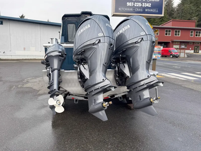 Package deals: - Twin Yamaha F200XCBs - Yamaha T9.9XPB Kicker - Anchor Guard - Anchor Pulpit - Diamond treadplate floor - Severe Duty suspension seats - LED lighting - Removeable galley table - Rocket launcher & cabin side rod holders - Seastar hydraulic steering - Sleeper bench seats - Stand up head - Wallas Viking heater - Wash down system - Aft steering station - Swim ladder - Electric Trim Tabs 12" x 12" - Garmin Electronics package - EZ Loader trailer