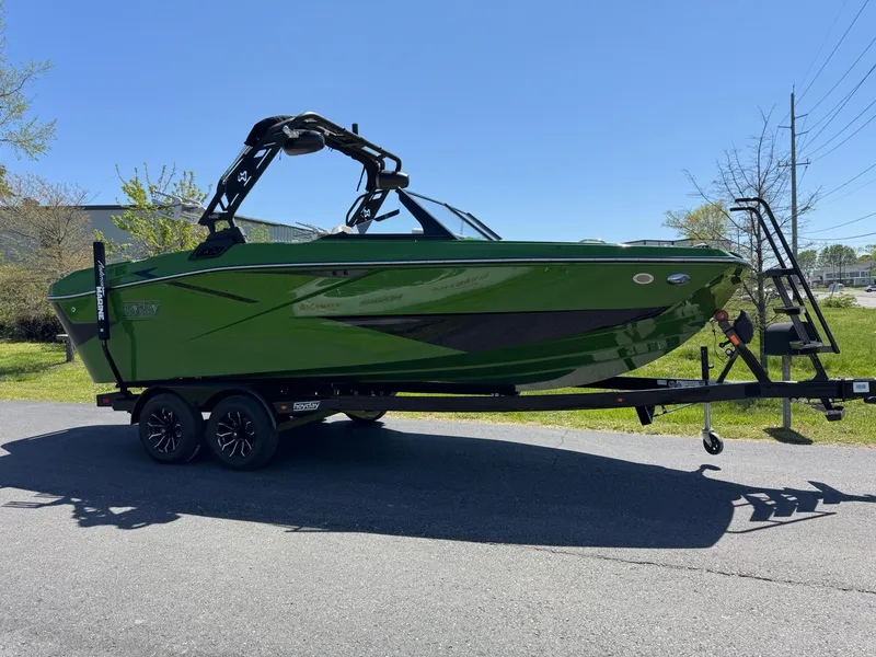 Factory added options that you want and will appreciate: Pair of swivel board racks, surf shaper option, PTM Pro combo ski mirror, Lux Package, Bow filler cushion and block off back rest, sunshade for tower, stainless steel upgrade package, cockpit heater, deluxe travel cover, Tech package and upgraded JL AUDIO stereo system with full RGB. LED light package upgrade, wireless phone charger, Power Platform, surf pipe, ski pylon, Boat Mate Tandem axle trailer with premium alloy wheels.