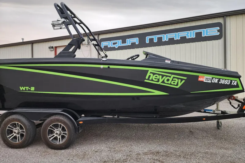 The 2017 Heyday WT-2 offers a blend of serious wakesport performance and social comfort in a versatile 22.52 food design. Built for riders who want pro-level wakes without the expensive price tag of a new inboard, this used WT-2 has been well maintained. At Aquamarine in Lawton, this model remains a favorite among those who love spending long days carving on Lawtonka Lake or pulling friends across Fort Cobb lake with solid, sell-shaped wakes tuned to their riding style. Designed around simplicity and efficiency, the WT-2 keeps the driver connected to the water through its clean helm layout, ergonomic controls, ad premium seating for up to 12 people. The open social layout allows for easy movement around the cockpit, while the rear facing transom seats make it just as fun to hand hour as to ride. The engine power and classic Heyday hull work together to create long, surfable waves perfect for both wakeboarding and wakesurfing - without the need for complicated systems.
