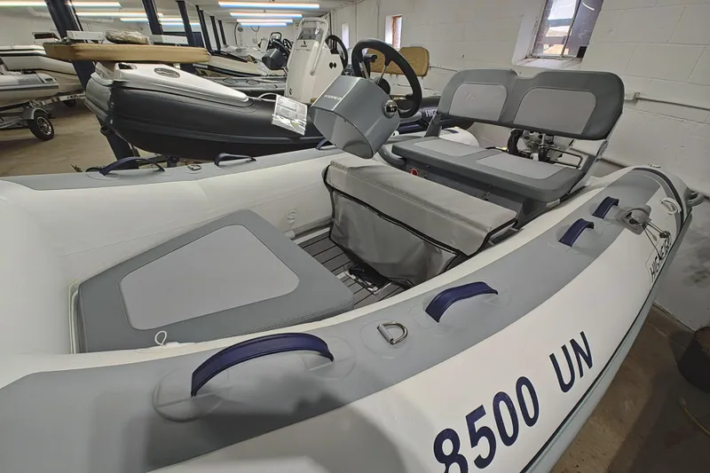 This Highfield CL 310 is an unusual combination of a Light Grey 2021 PVC CL 310, with a new 2021 Grey FCT Console, a new 2025 Tohatsu 20hp white outboard, and a new 2025 Genesis 4211 Trailer.
