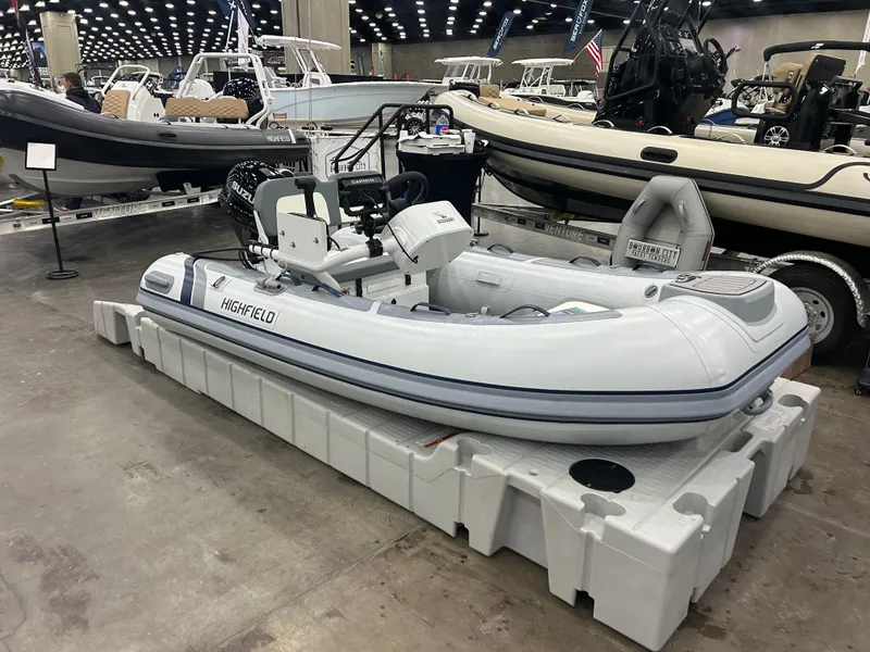 New 2024 Highfield Classic 310 Hypalon Light Grey in color. Rigged with FCT8 console and 20hp Suzuki