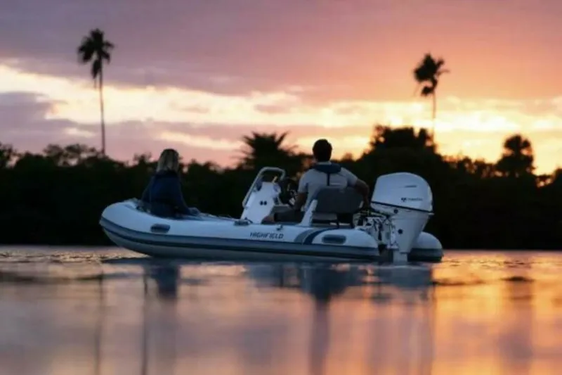 High tensile chromated & powder coated aluminum hull – Luxury GT Console System with steering – Bow and stern Pole Lights – LED Deck Lights – Bow locker (fits 6 gallon fuel tank) – Bow Cushion – Self-draining cockpit – ORCA® Hypalon or Valmex® PVC tube – Welded seams (PVC) – Flush mount non-return valves – Bilge pump attachment point – Integrated transom supports – Lifting points and towing eyes – Tow bridle points – Non-slip flooring – Heavy duty rub strake – Full length keel guard – Tank strap kit – Highfield dry bag – Foot pump, oars, repair kit