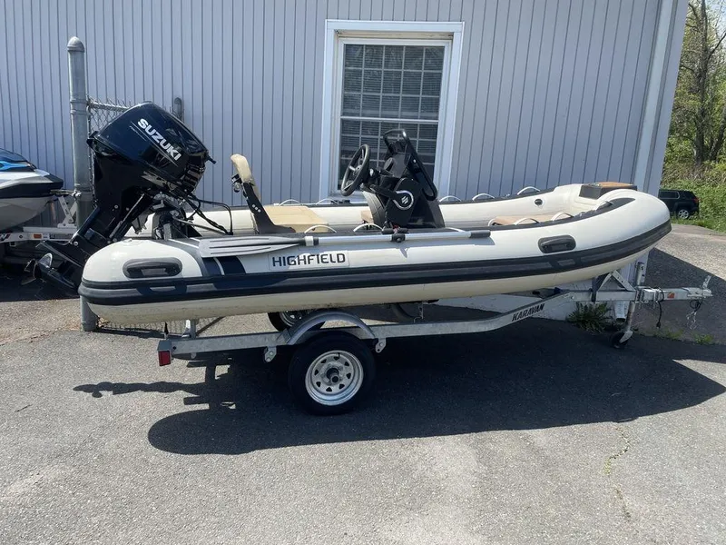 Check out this awesome 2023 Highfield Classic 380 GT Special Edition !!!Just arrived, and traded in on a new 2025 Highfield Sport 660 !! The Special Edition starts with the GT Package, and then uses special Hypalon Black & Tan colors to make a Sharp Package. This one is equipped with like new Mooring Cover, a Stereo with USB & Bluetooth, Special Interior Courtesy Lights, and Underwater Transom Lights & TRAILER !! New this package is over $25,000, with only 50 hours, (Check out thelast picture of the lap top report posted showing most running time was under 3,000 RPM ! ) you can get this one for under 20,000.00 !! Come see it today !!
