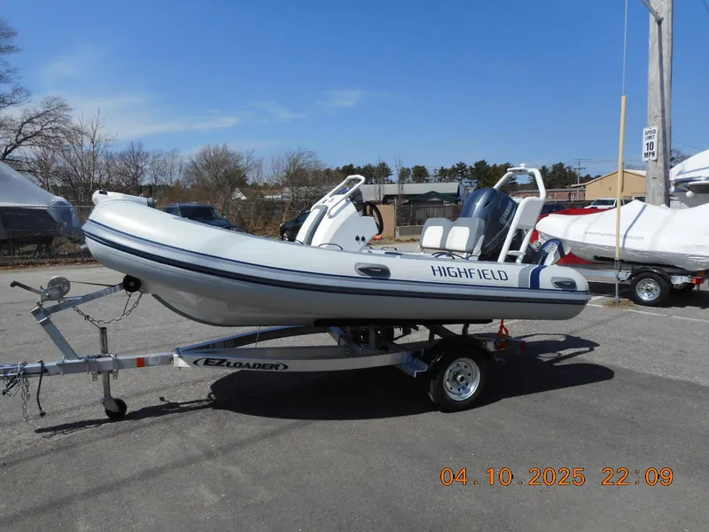 2025 Highfield Classic 400. Powered by Yamaha 50HP, E-Z Loader Trailer. Light Grey Hypalon Tubes, White Hull, White and Dark Grey Cushions, Black and Grey Decking. Bow Step, Bow Locker, Built in Fual Tank, Roll Bar.