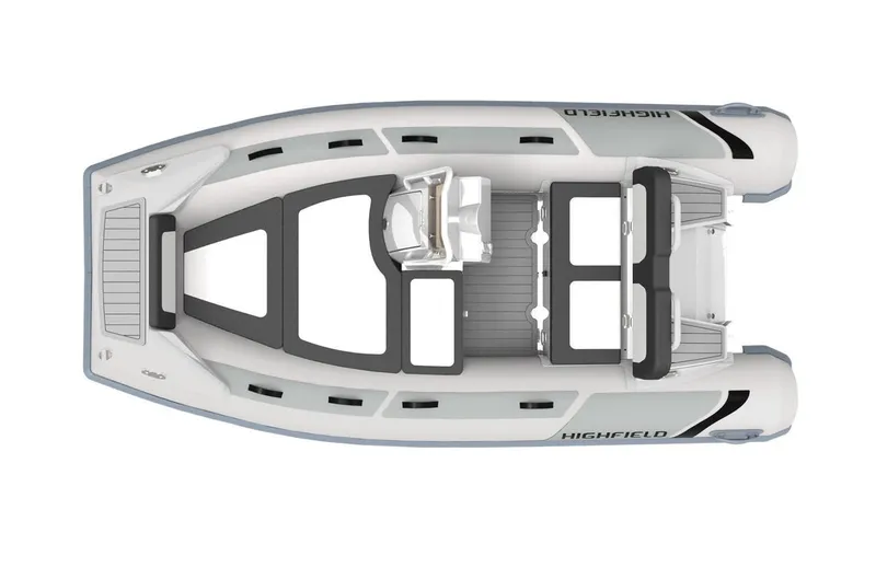 The all new Highfield Sport 360 Inflatable RIB is similar but a step up in size and power to the smaller 330. The perfect combination of luxury features and a dry riding heavy-duty aluminum hull mean the Sport 360 is the best of both worlds in a small tender RIB. The new twenty-degree hull with welded lift strakes takes you through the roughest conditions and can be brought up on rocky beaches with peace of mind, while the luxury diamond stitch cushions make for a comfortable day on the water. The deep rear seat and ergonomic console offer more leg room any other RIB its size and the console includes a tinted windscreen, grab rail and the optional carbon dash. The dash has room for a 5" chartplotter to help with navigation. The bow step is designed to be extra wide for easy boarding, using split double bow nav lights and folding cleats so no tripping hazards. There are three dry storage compartments including an extra deep rear seat area, and all include hydraulic pistons to hold up lids for easy stowing. Rated for 6 persons and 40hp, and incorporating a built in 8 gallon fuel system, the New Sport 360 has everything you need in a deluxe tender RIB.