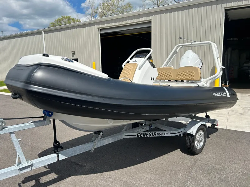 The Highfield Sport 390 is the next level of comfort and performance. Large diameter tubes in Orca Hypalon® fabric are married to a marine grade aluminum hull, providing a light-weight but powerful package, with seating for four (and load carrying capacity for six). This SPORT 390 is outfitted with a Tohatsu 50hp engine and the heavy duty rollbar, making it a perfect compact towing boat for toys or for small to medium sized skiers.