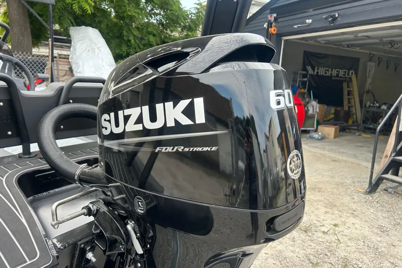 Highfield Sport 390 in Hypalon with upgraded Black Color. Factory Roll Bar and Suzuki 60hp. Rigged with Garmin MFD and transducer. Fusion Stereo