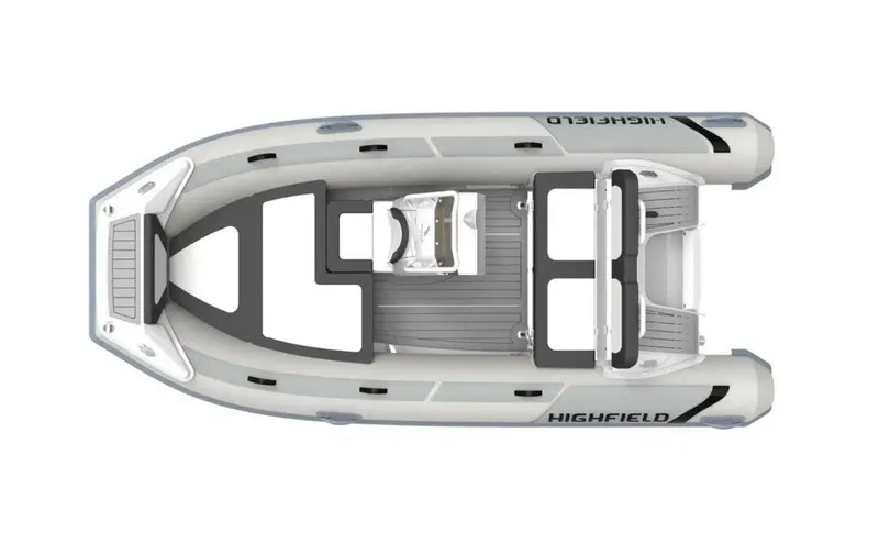 The all new Highfield Sport 390 is the next level of comfort and performance. The perfect combination of luxury features and a dry riding heavy-duty aluminum hull give you the best of both worlds in a small tender RIB. The twenty-degree hull with welded lift strakes with the built-in fuel system will take you through the roughest conditions and can be brought up on rocky beach with peace of mind while the luxury diamond stitch cushions make for a comfortable day on the water. The deep rear seat and ergonomic console offer more leg room any other RIB its size and the console includes a tinted windscreen, grab rail and the optional carbon dash. The dash has room for a 7" chartplotter to help with navigation. The bow step is designed to be extra wide for easy boarding, using split double bow nav lights and folding cleats so no tripping hazards. There are dry storage compartments including an extra deep rear seat area, and all include hydraulic pistons to hold up lids for easy stowing. Rated for 7 persons and 60hp, and incorporating a built in 8 gallon fuel system, the New Sport 390 has everything you need in a deluxe tender RIB.