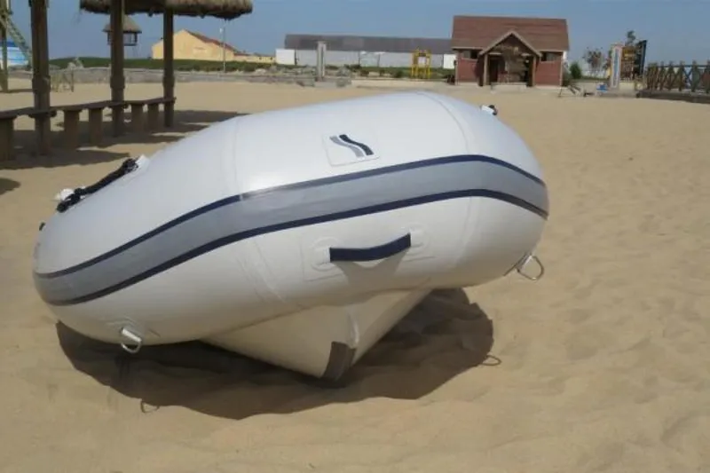 Standard features include Orca Hypalon or Valmex PVC tubes (list price includes Hypalon tubes), flush mount non-return valves, a self-draining deck, a removable seat, lifting points, tow eyes, tow bridle points, a non-skid deck, a light weight rub rail, a full length keel guard, and an under seat bag, a Highfield dry bag, a repair kit, a foot pump, and oars.