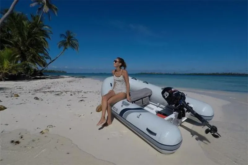 The Highfield Ultralite 340 has a maximum rating of 20 HP with 10 HP recommended. At 11'2, it weighs in at 117 pounds. Its lightweight design is ideal for those who would usually opt for a soft bottom tender, as the rigid hull of the Ultralite delivers a superior and more stable ride without a substantial weight gain. The high tensile chromated and powder coated hull is durable enough to beach and trailer the UL 340 without worry of damage.