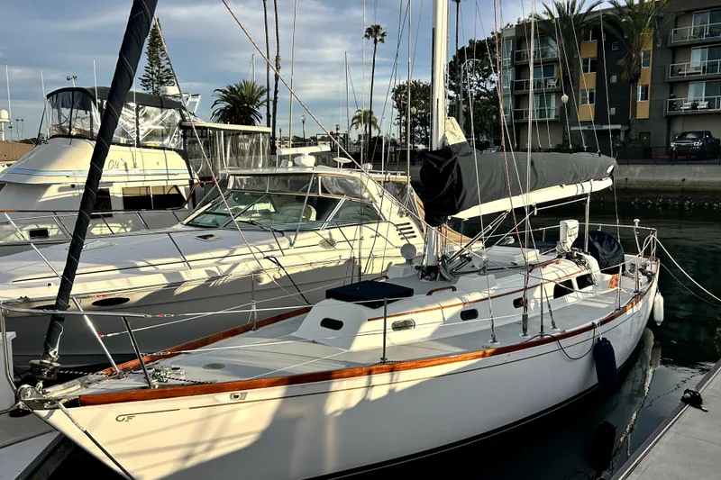 Introducing the stunning 1969 Hinckley 38, a classic cruiser that beautifully combines timeless design with modern functionality. With an overall length of 37.4 feet, this vessel features a robust fiberglass hull shaped for displacement, ensuring a smooth and stable ride. The fin keel enhances performance, making it ideal for both leisurely cruises and spirited sailing. Powered by a reliable 44 hp Westerbeke diesel engine, the Hinckley 38 boasts a cruising speed of 6.5 knots, with a maximum hull speed of 7 knots, providing an exhilarating experience on the water. The electric windlass adds convenience to anchoring, making your adventures hassle-free. This boat is perfect for those who appreciate craftsmanship and elegance. Whether you're exploring coastal waters or enjoying a weekend getaway, the Hinckley 38, affectionately named "Tigress," promises unforgettable moments on the sea.